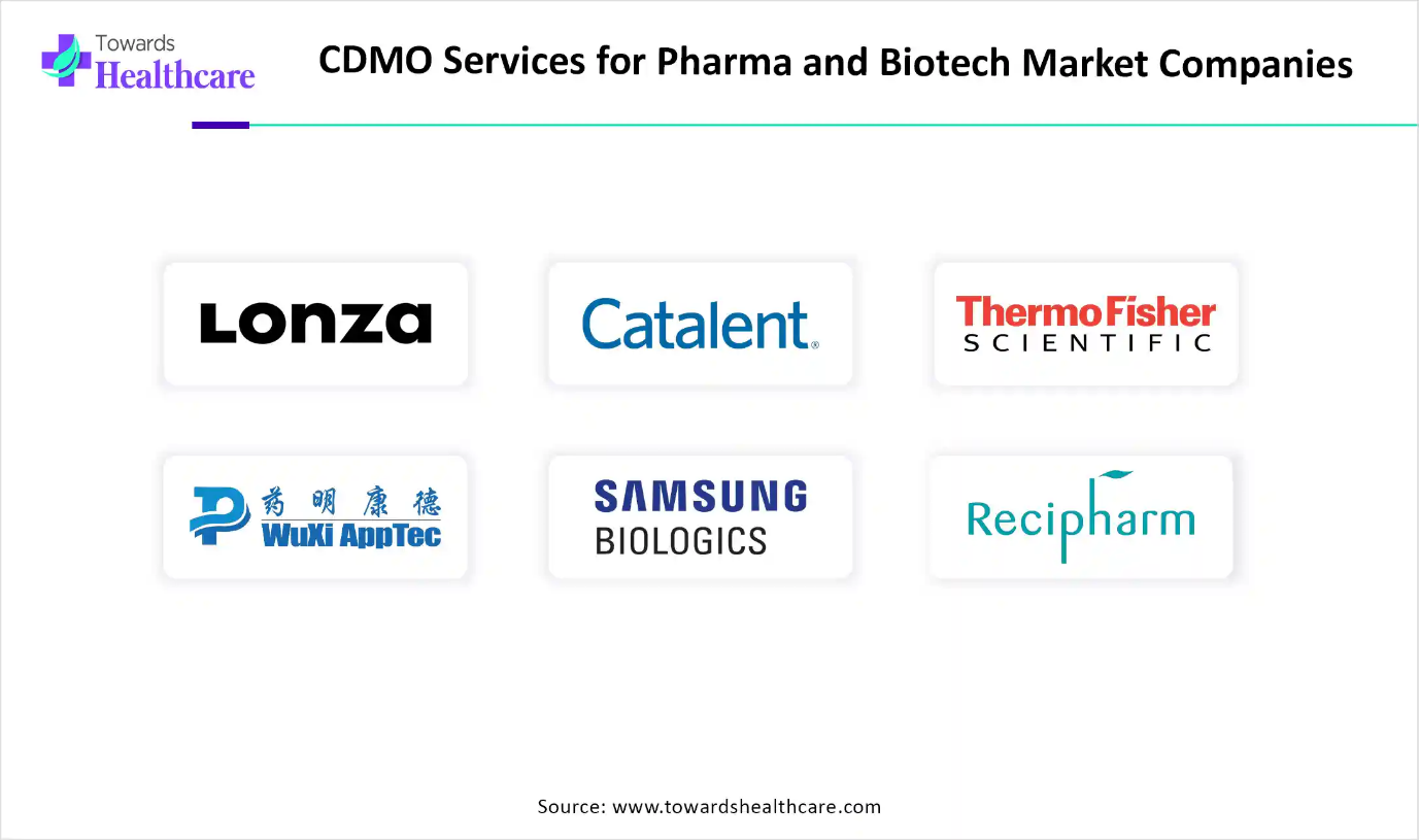The adoption of CDMO services is surging as pharma and biotech firms pursue innovative treatment approaches to address evolving disease landscapes. This has led to new collaborations, the establishment of novel CDMOs, and the introduction of advanced products. Moreover, the integration of artificial intelligence within CDMO operations is streamlining workflows and improving efficiency. Collectively, these factors are fostering robust growth in the global CDMO services market.